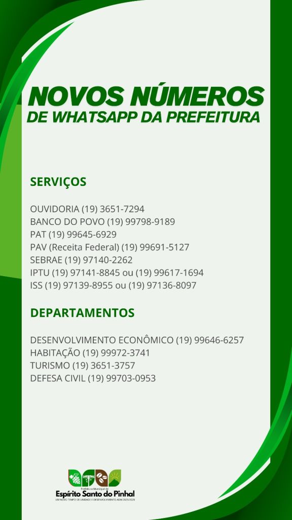 NOVOS NÚMEROS DE WHATSAPP DA PREFEITURA