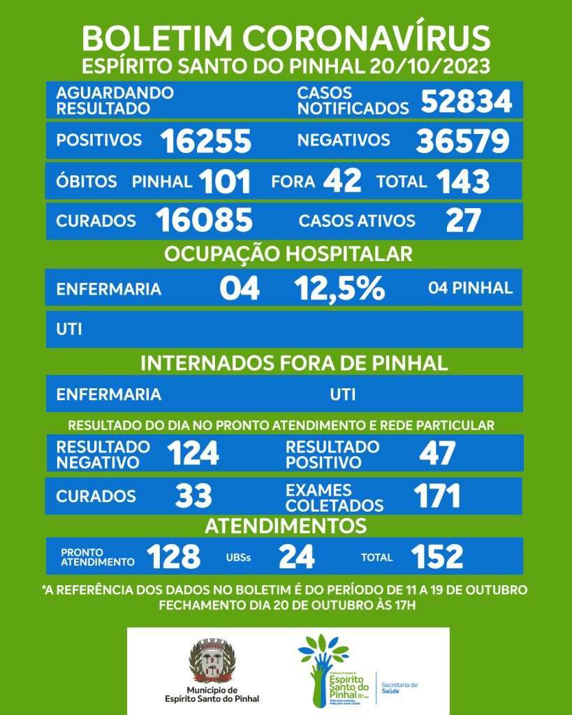 Boletim Coronavírus de 20/10/2023