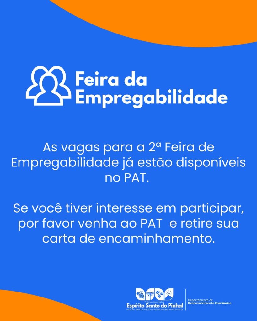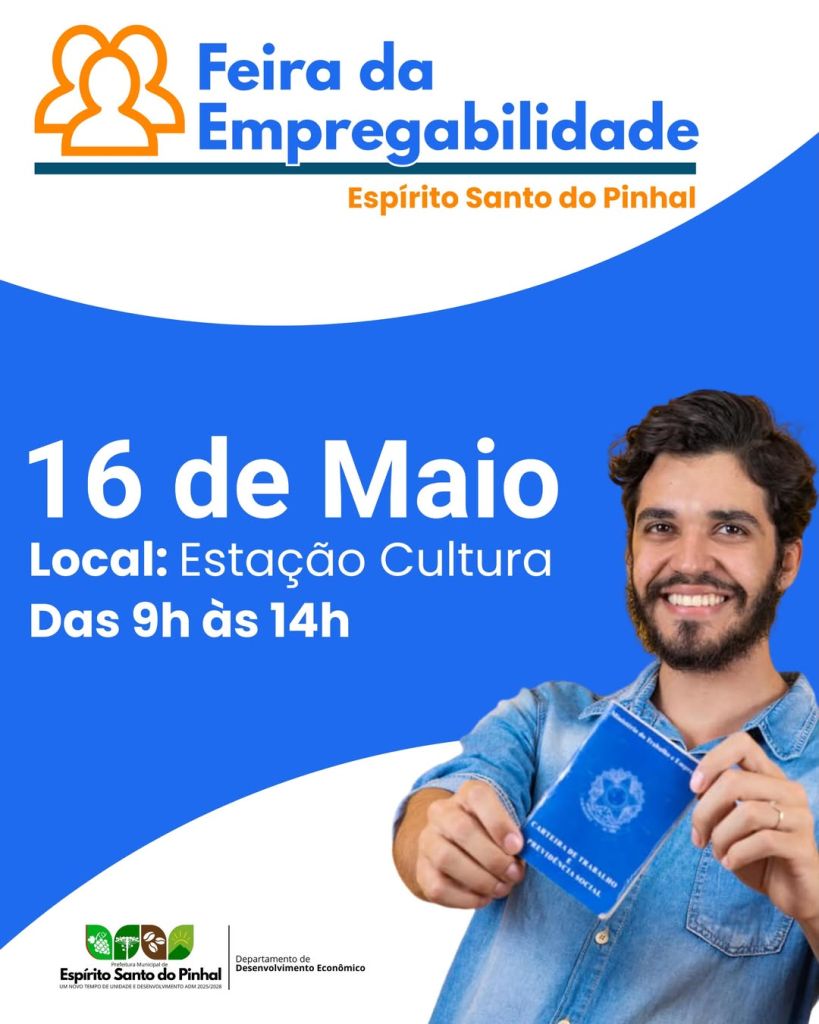 A Prefeitura Municipal de Espírito Santo do Pinhal realiza, no próximo dia 16 de maio, a 2ª Feira da Empregabilidade. O evento, que ocorrerá na Estação Cultura, das 9h às 14h, tem como objetivo central fomentar a geração de emprego e renda no município, conectando cidadãos em busca de recolocação profissional a empresas locais com demandas de contratação.