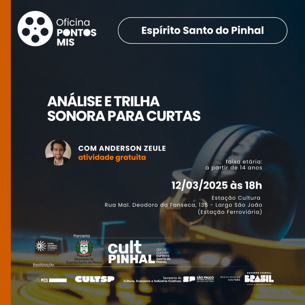 Sinopse: Descubra o poder da música na narrativa cinematográfica com a nossa oficina de análise de trilha sonora para curtas-metragens. Nesta experiência imersiva e interativa, você aprenderá a identificar e compreender os elementos essenciais de uma trilha sonora, como a escolha de instrumentos, ritmo, melodia e harmonia. Analisar grandes obras cinematográficas e entender a relação e os diálogos das cenas e suas respectivas trilhas, além do conjunto da trilha na concepção geral e total da obra.