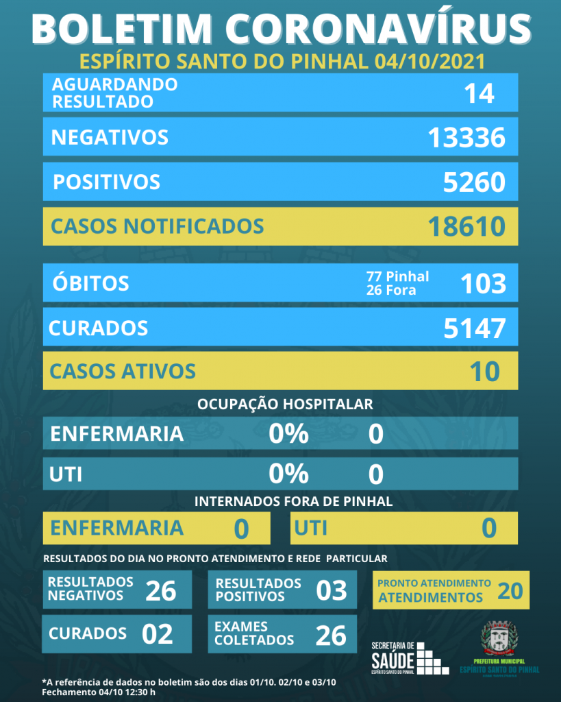 Enfermaria está zerada, sem nenhum leito ocupado.