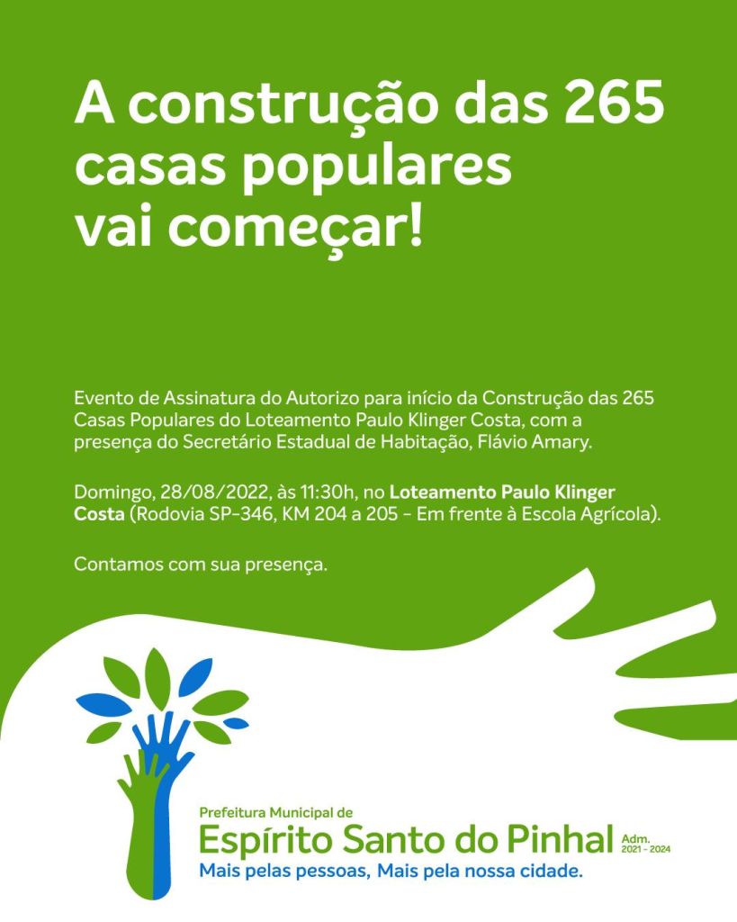 Evento de Assinatura do Autorizo para início da Construção das 265 Casas Populares do Loteamento Paulo Klinger Costa, com a presença do Secretário Estadual de Habitação, Flávio Amary. Domingo, 28/08/2022, às 11:30h, no Loteamento Paulo Klinger Costa (Rodo
