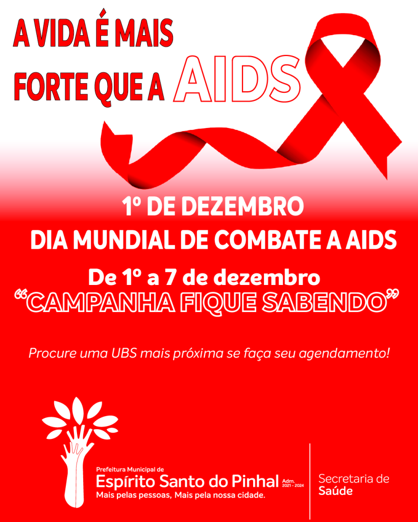 A Prefeitura Municipal, através da Secretaria Municipal de Saúde, informa que de 1º a 7 de Dezembro, estamos na “Campanha Fique Sabendo”, de prevenção e combate a AIDS.