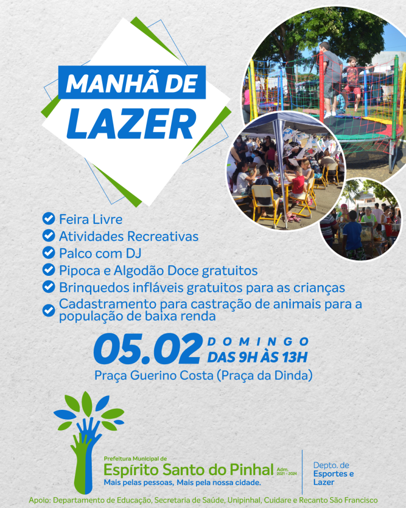 Acontece no próximo Domingo, dia 05/02, a Manhã de Lazer. Confira as atrações!