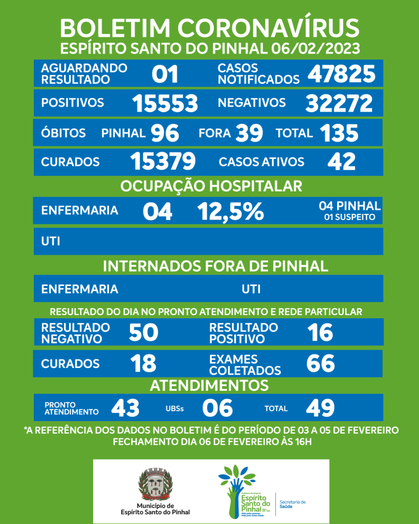 Boletim Coronavírus de 06/02/2023, segunda-feira.
