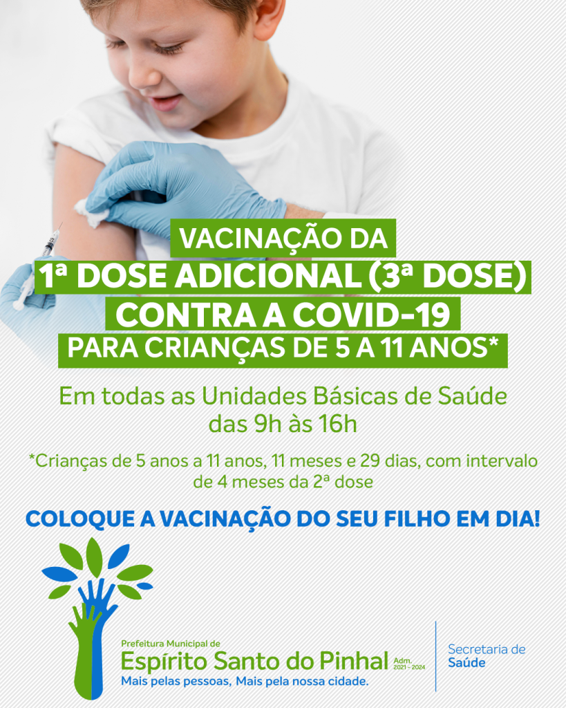 Foi liberada a vacinação da 1ª dose adicional (3ª dose) contra a COVID-19 para crianças de 5 a 11 anos