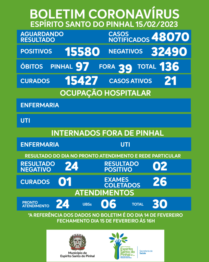 Boletim Coronavírus de 15/02/2023, quarta-feira.