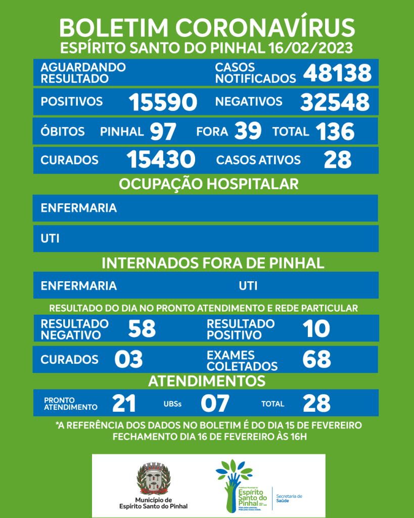 Boletim Coronavírus de 16/02/2023, quinta-feira.