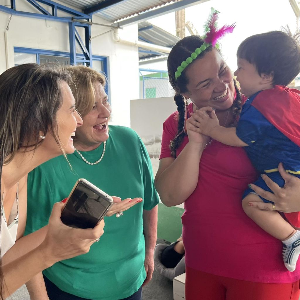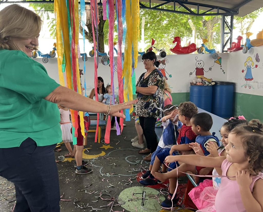 A prefeita Cristina Brandão Domingues e a diretora de Educação Solange Izidoro estiveram hoje nas Emebs Dr. José Rubens Bartholomei e Dr. Paulino de Felippi para que pudessem acompanhar de perto a alegria das crianças