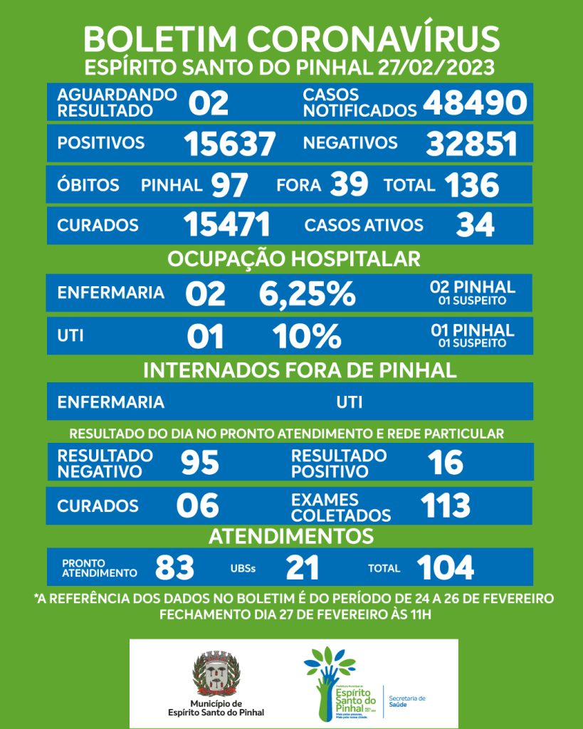 Boletim Coronavírus de 27/02/2023, segunda-feira.