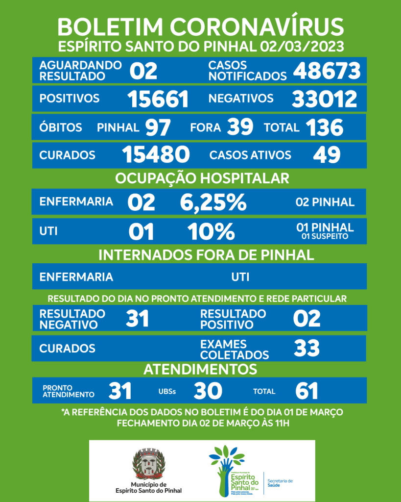 Boletim Coronavírus de 02/03/2023, quinta-feira.