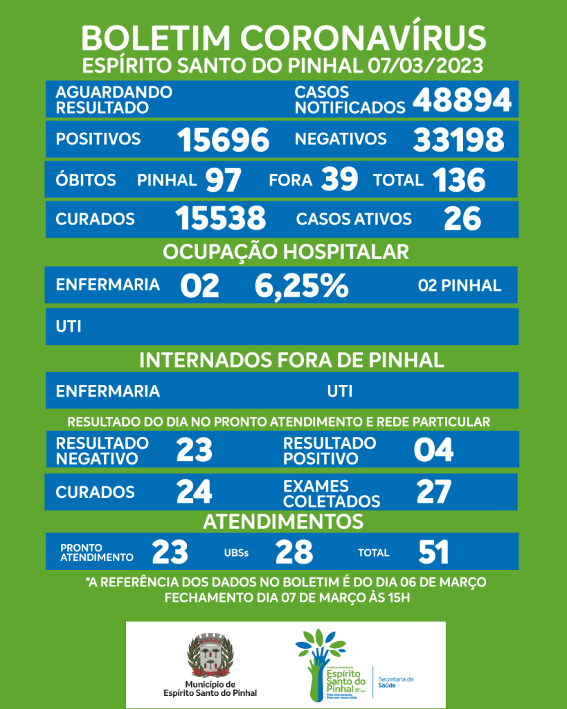 Boletim Coronavírus de 07/03/2023, terça-feira.