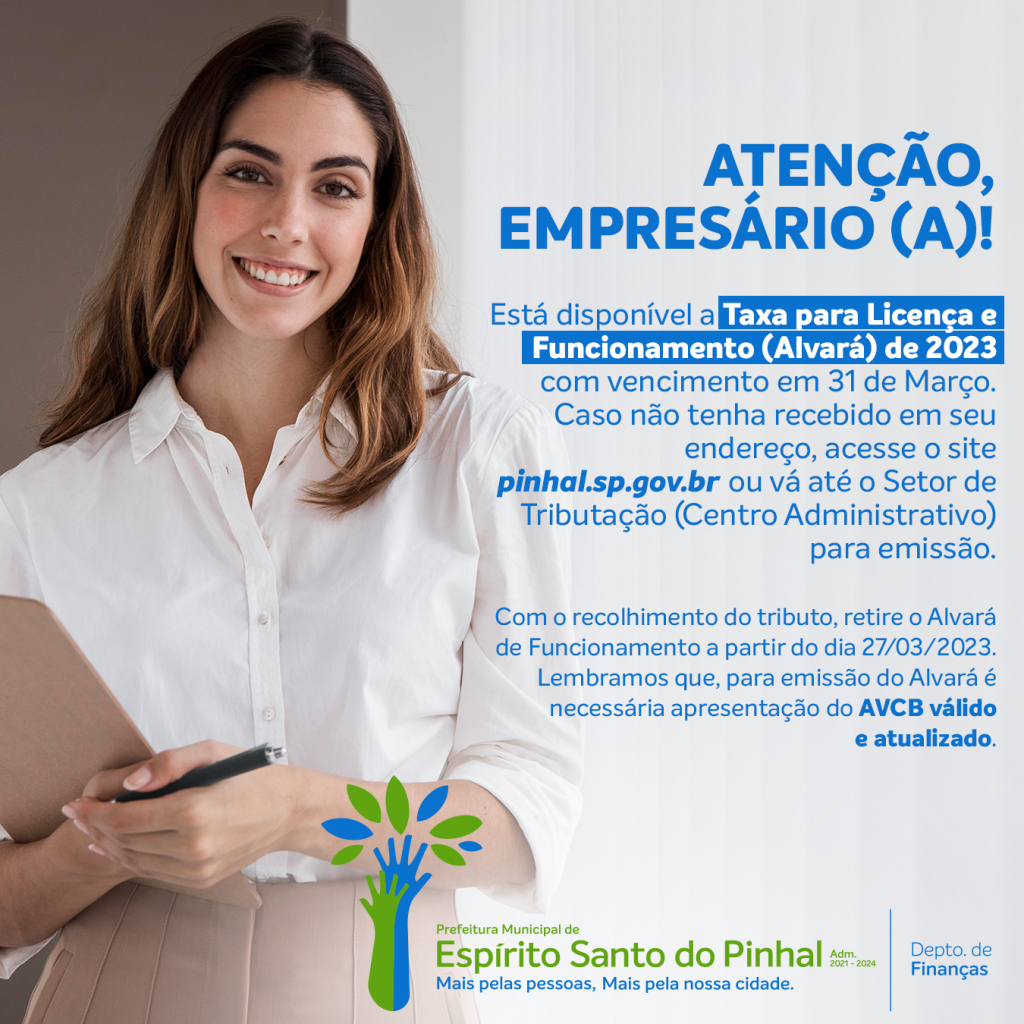 Empresário (a), a taxa para licença e funcionamento de 2023 está disponível!