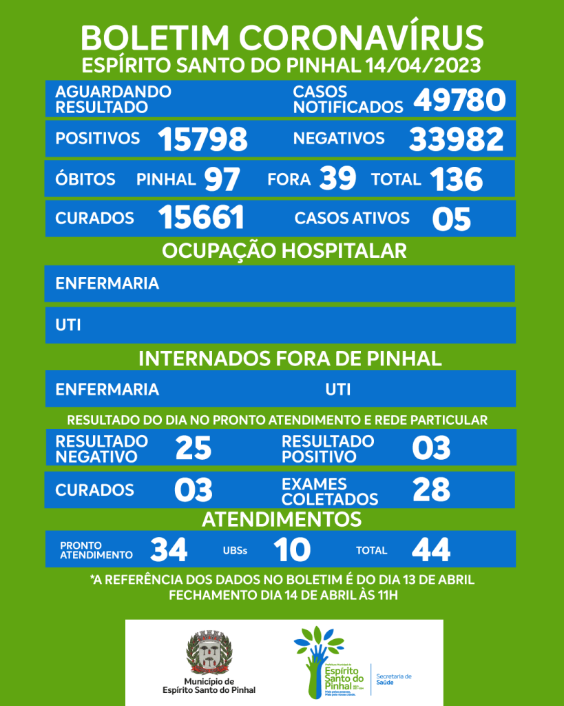 Boletim Coronavírus de 14/04/2023, sexta-feira.