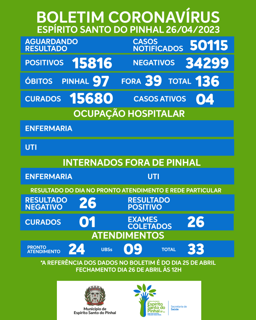 Boletim Coronavírus de 26/04/2023, quarta-feira.