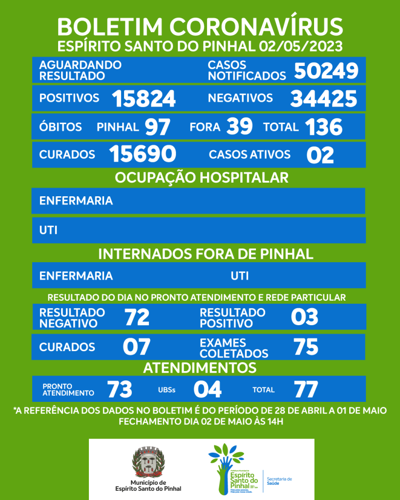 Boletim Coronavírus de 02/05/2023, terça-feira.