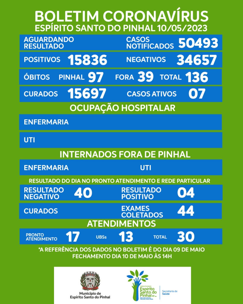 Boletim Coronavírus de 10/05/2023, quarta-feira.