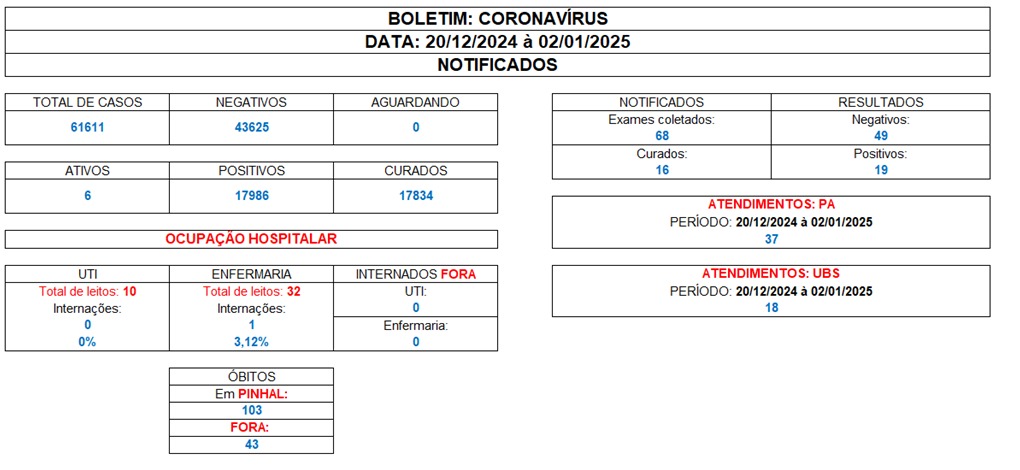 Boletim Coronavírus de 20/12/2024 a 02/01/2025