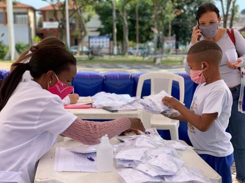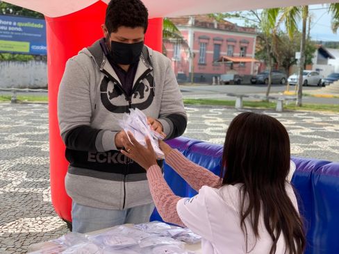 Com distribuição de máscaras e orientações sobre o uso correto das mesmas, também foi orientado sobre a importância do isolamento social e distanciamento de, ao menos, um metro e meio de outras pessoas caso tenha que sair de casa.