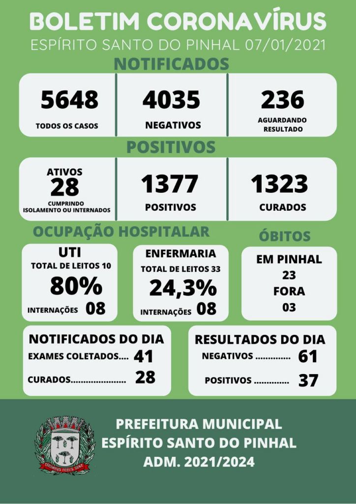 Boletim Coronavírus 07/01/2021 quinta-feira