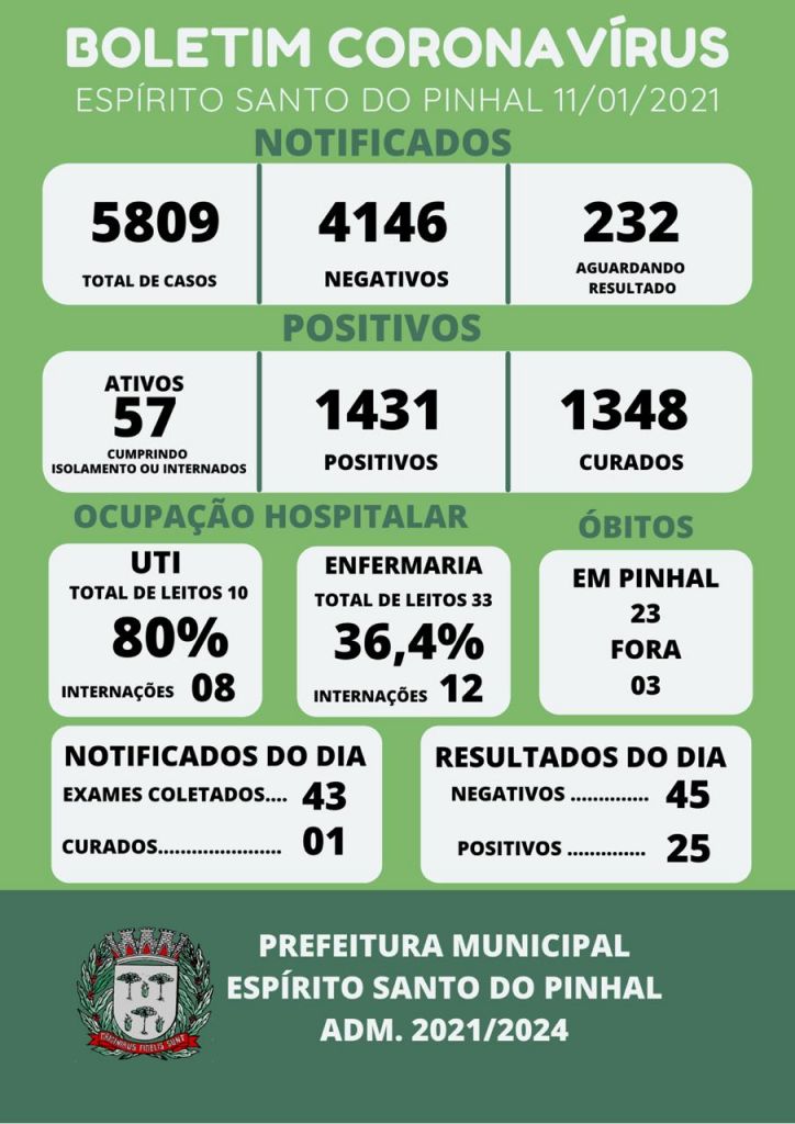 Boletim Coronavírus 11/01/2021 segunda-feira