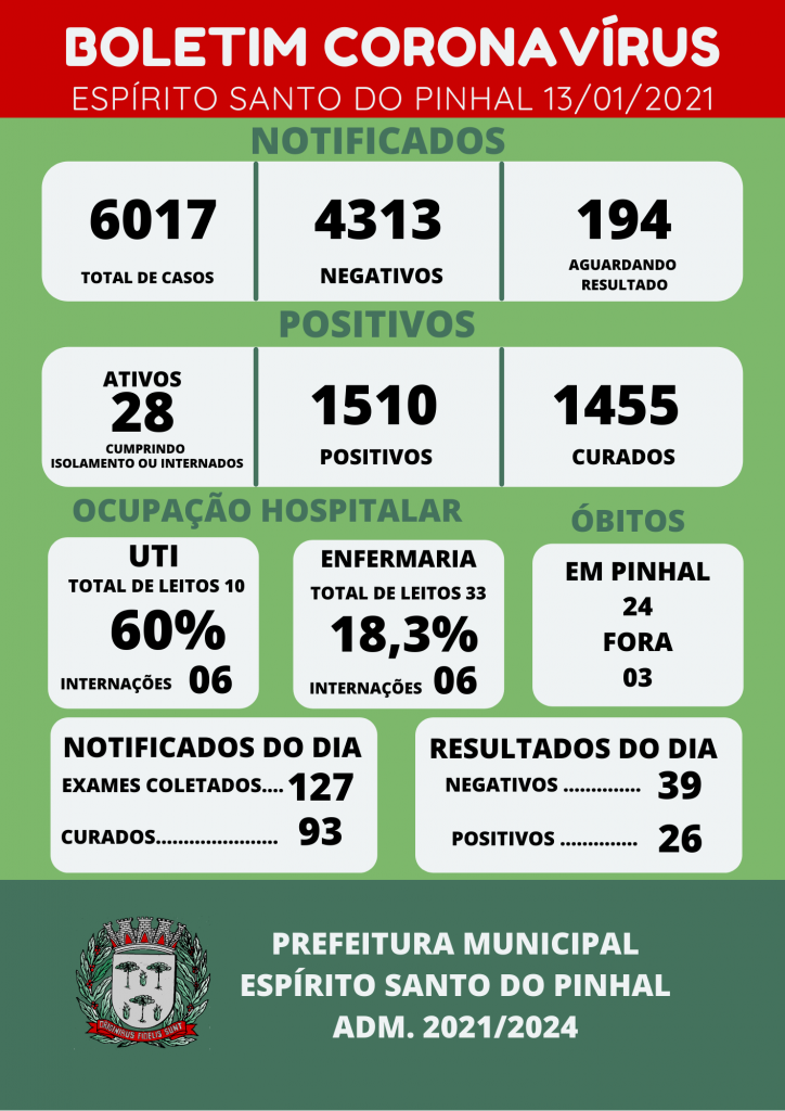 Boletim Coronavírus 13/01/2021 quarta-feira