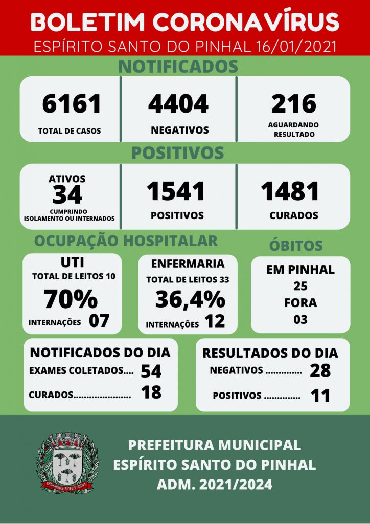 Desses, 2 pacientes são de Pinhal e 5 de outros municípios.