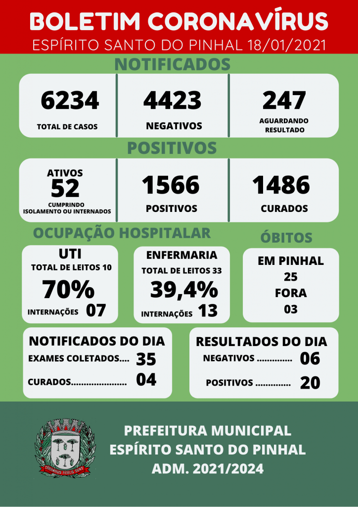 Boletim Coronavírus 18/01/2021 Segunda-feira