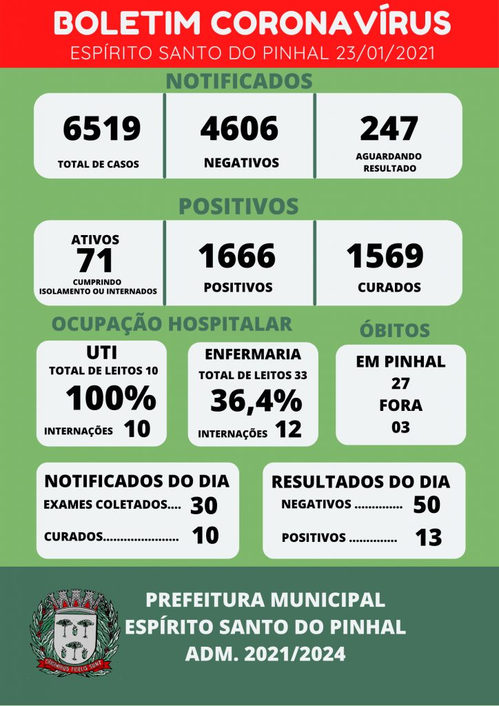 Desses, 07 pacientes são de Pinhal e 3 de outros municípios.