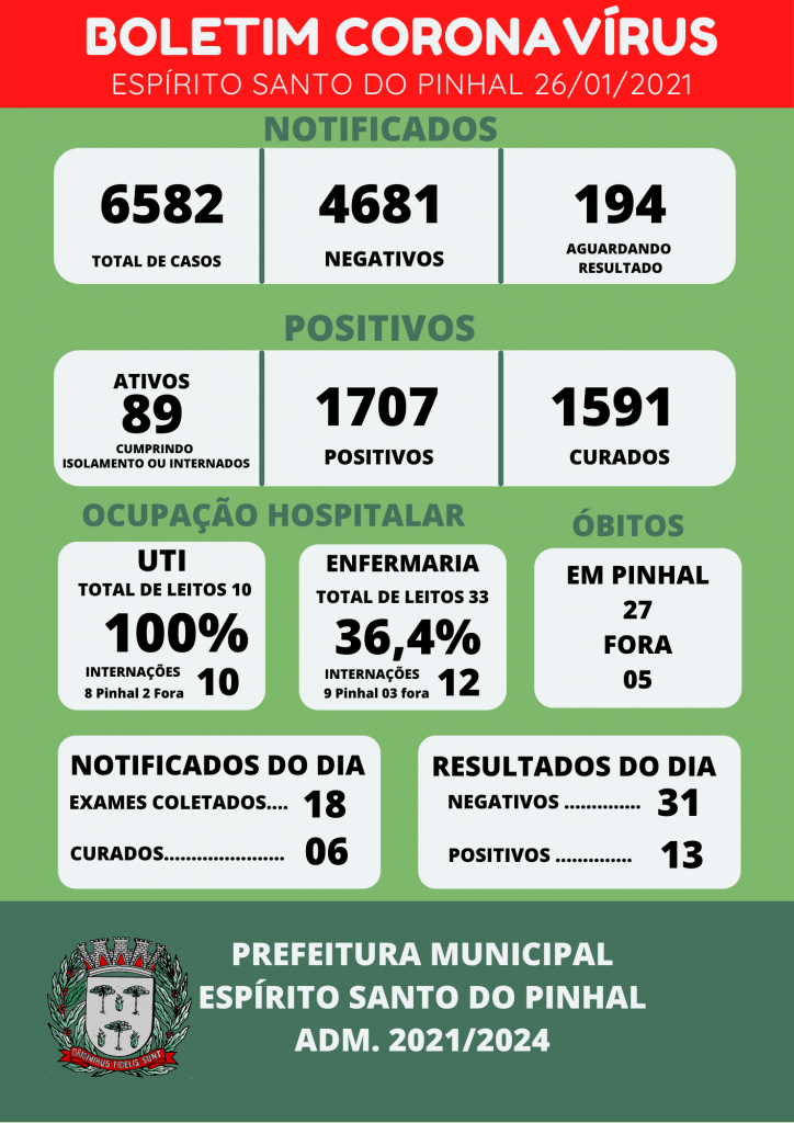 Boletim Coronavírus 26/01/2021 Terça-feira