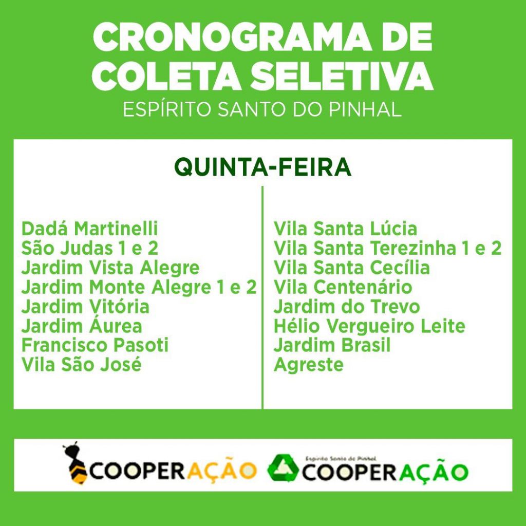 A CooperAção é a cooperativa de trabalho que, atualmente, realiza a coleta de material reciclável em Espírito Santo do Pinhal, trabalho de extrema importância para nossa cidade e para o mundo todo.