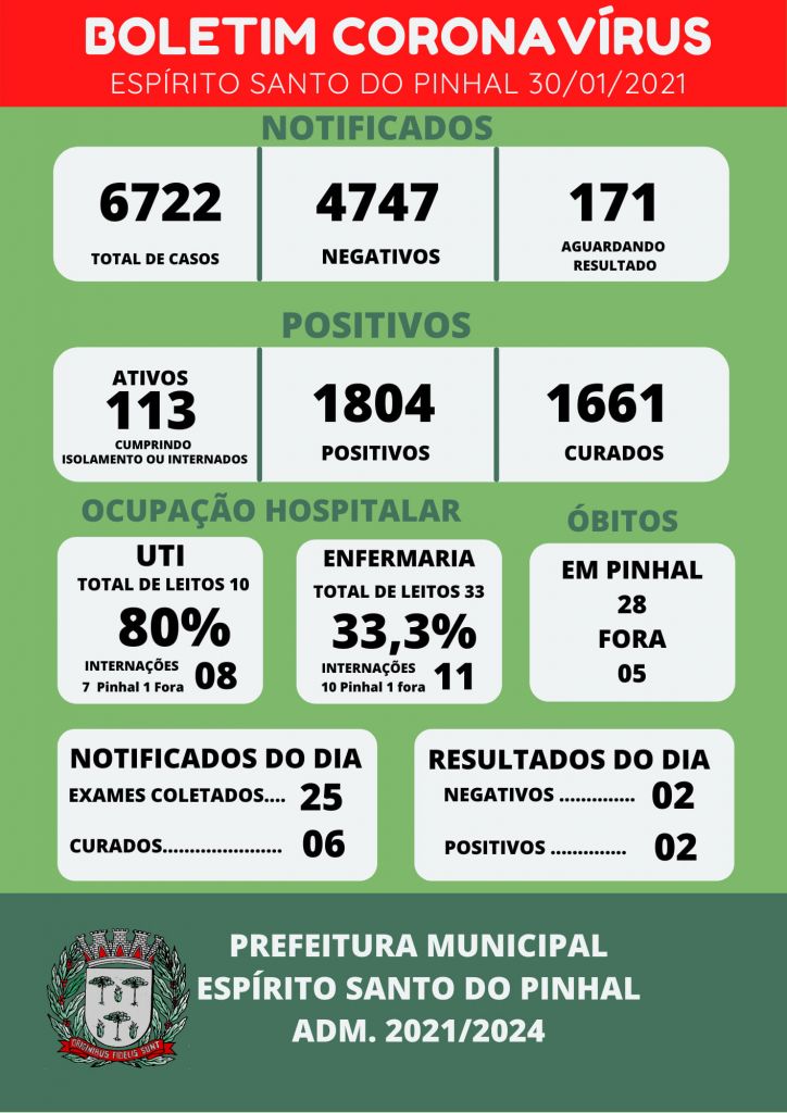 Desses, 07 pacientes são de Pinhal e 1 de outro município.