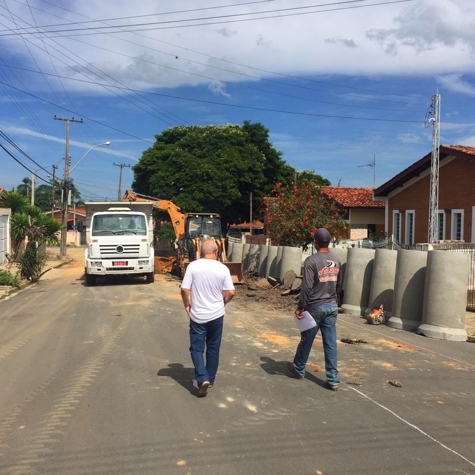 O Diretor de Obras e Planejamento, Paulo Costa, e o Engenheiro Civil, Odilon, visitaram o retorno dos trabalhos de Drenagem no Jardim Universitário.