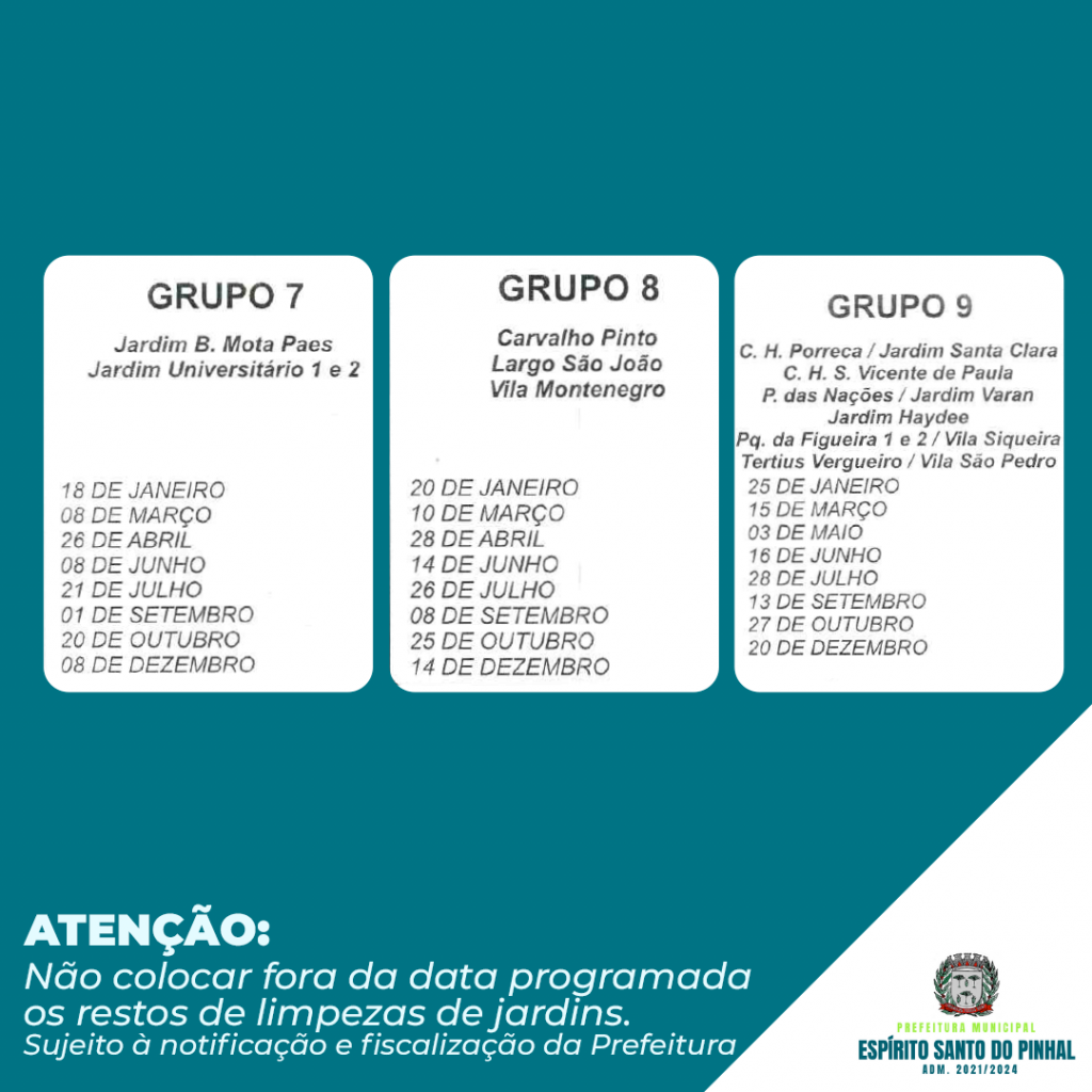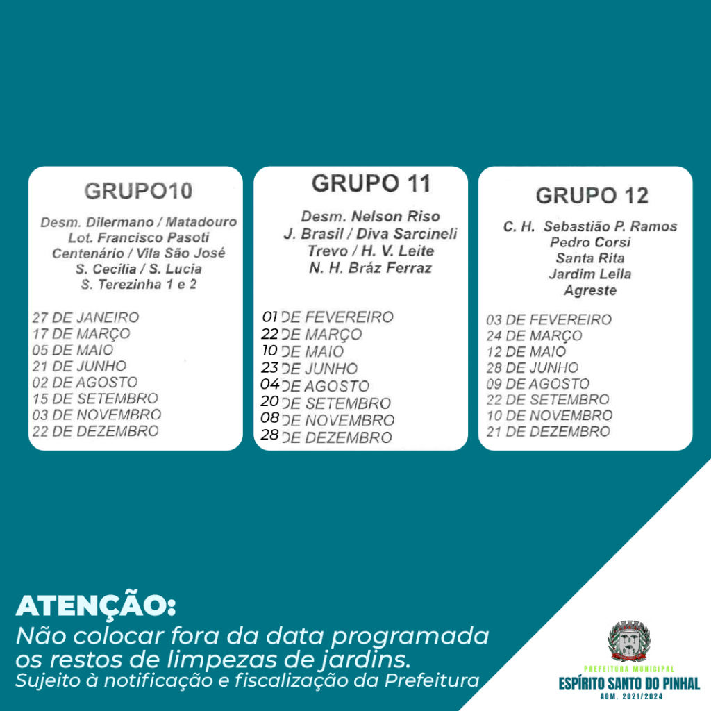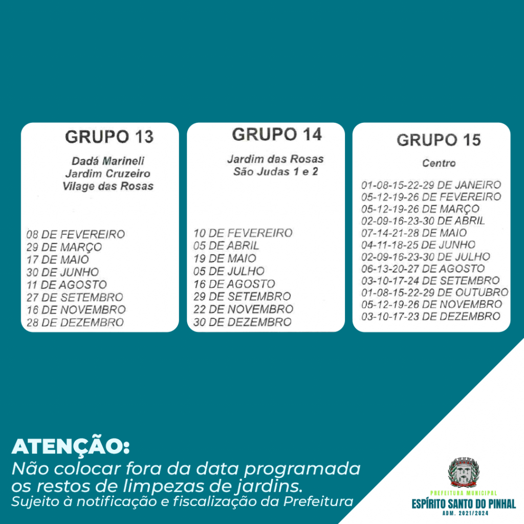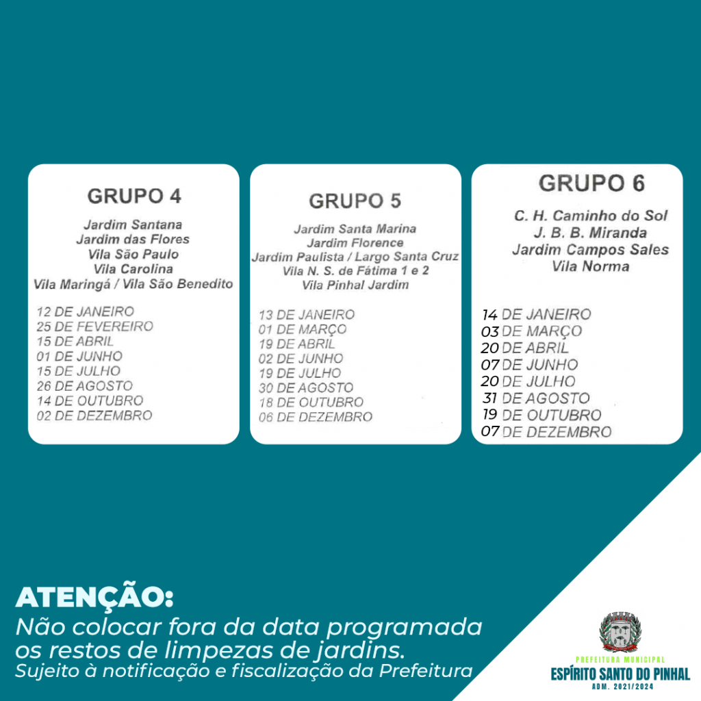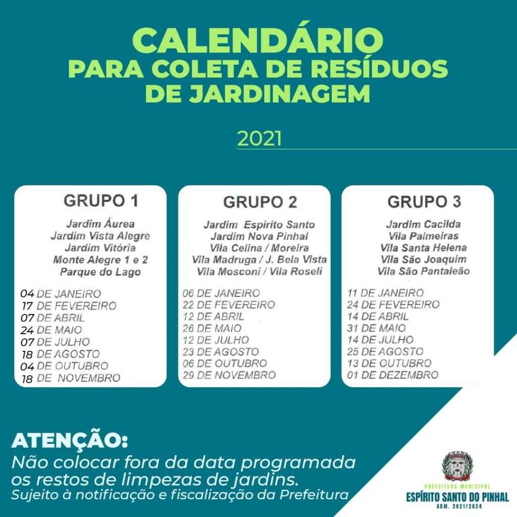 Confira no calendário de 2021 as datas de coleta de resíduos de jardinagem.