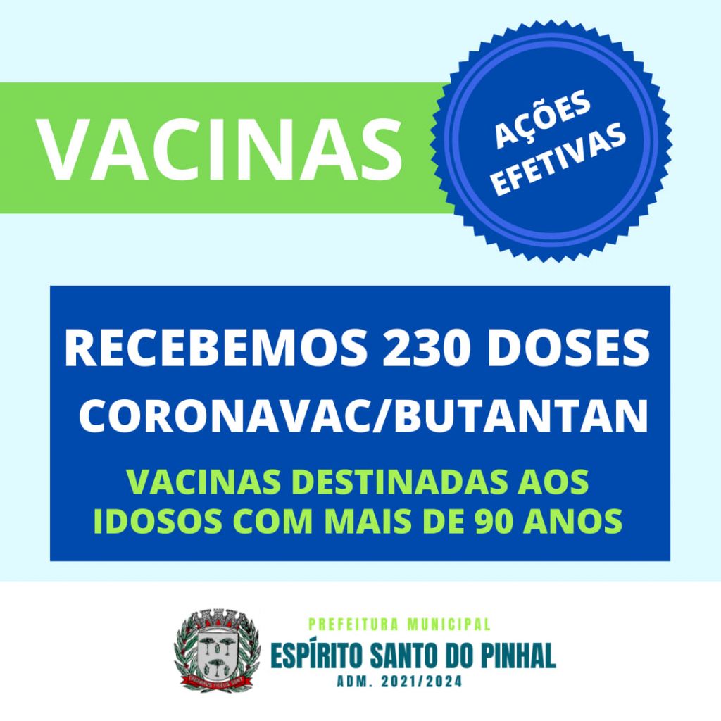 Recebemos 230 doses da Vacina Coronavac/Butantan que serão destinadas a vacinação dos idosos com mais de 90 anos.