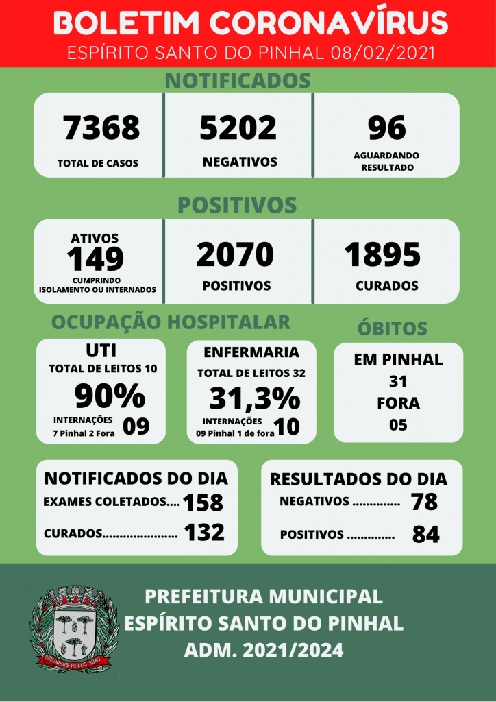 Boletim Coronavírus 08/02/2021 Segunda-Feira