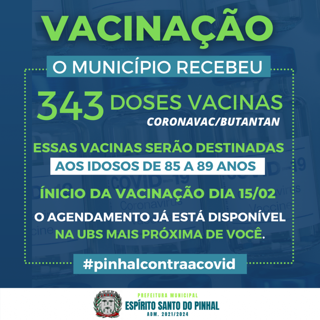 O município já recebeu as 343 doses da Vacina Coronavac/Butantan que serão destinadas aos idosos de 85 a 89 anos.