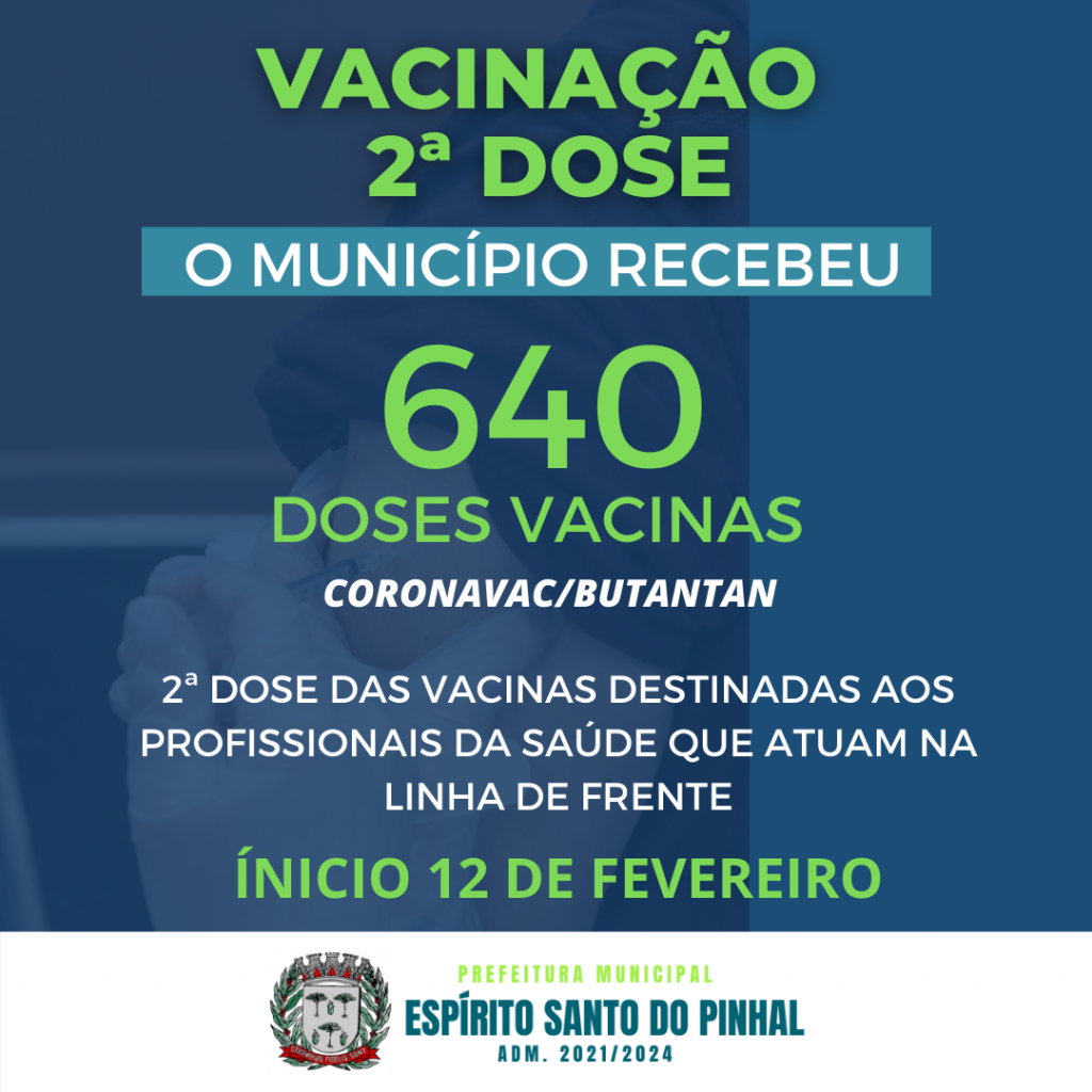 Foram recebidas 640 doses da Vacina Coronavac/Butantan, esse lote corresponde a segunda dose que será aplicada nos Profissionais da Saúde que atuam na linha de frente e receberam a primeira dose no início da campanha de vacinação.