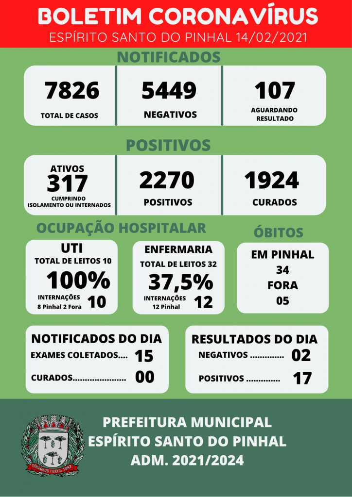 Desses, 08 pacientes são de Pinhal e 2 de outros municípios.