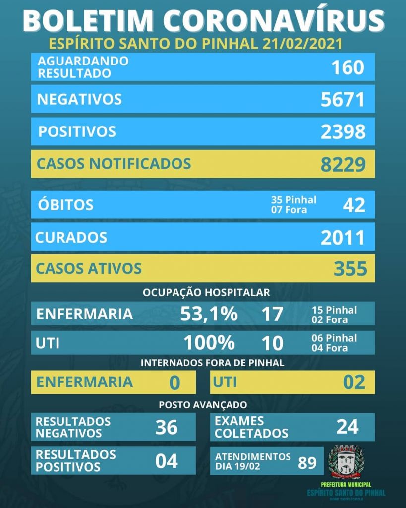 Desses, 06 pacientes são de Pinhal e 4 de outros municípios.