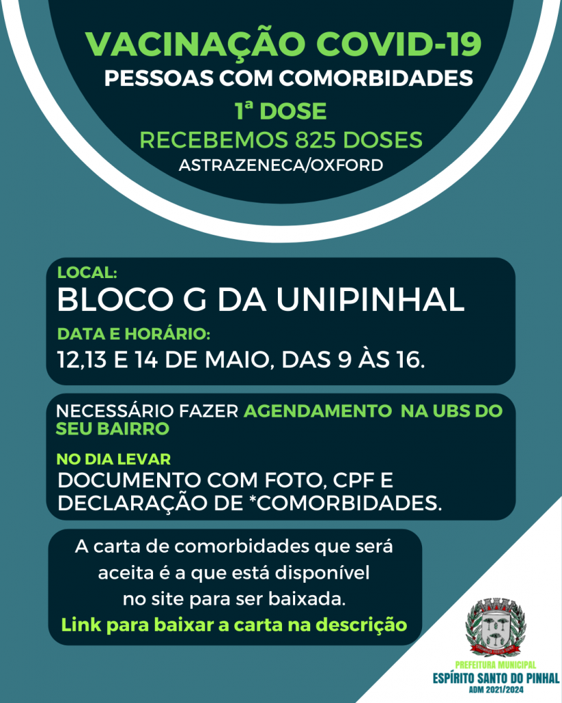 A declaração de comorbidades aceita está disponível no site da prefeitura para ser baixada através do link abaixo.